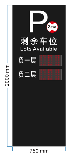 This product is equipped with standard RS485 communication. The module display can be customized, enabling the system to detect vacant parking spaces through parking guidance systems and parking detection devices. It transmits information to entrance lightbox screens, instantly updating real-time data on available parking spaces in the parking area. The displayed text content can be personalized, supporting simultaneous display of data from multiple zones. The remaining parking spaces and corresponding information can automatically switch display colors based on system configuration. The display consists of high-brightness LED modules, drive circuits, control circuits, cabinets, and other components. It receives output information from the node controller