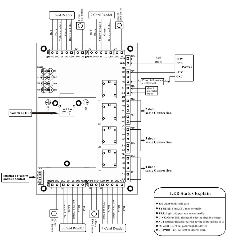 For 4 door entry by card and exit by push button |