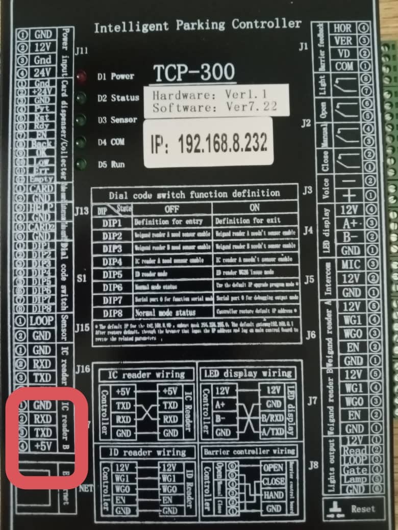 When the card reader connected to the fixation card reader interface (J6) must implement the card reader, this position can be ON, so that it can achieve the function of non -parking in and out of the field.